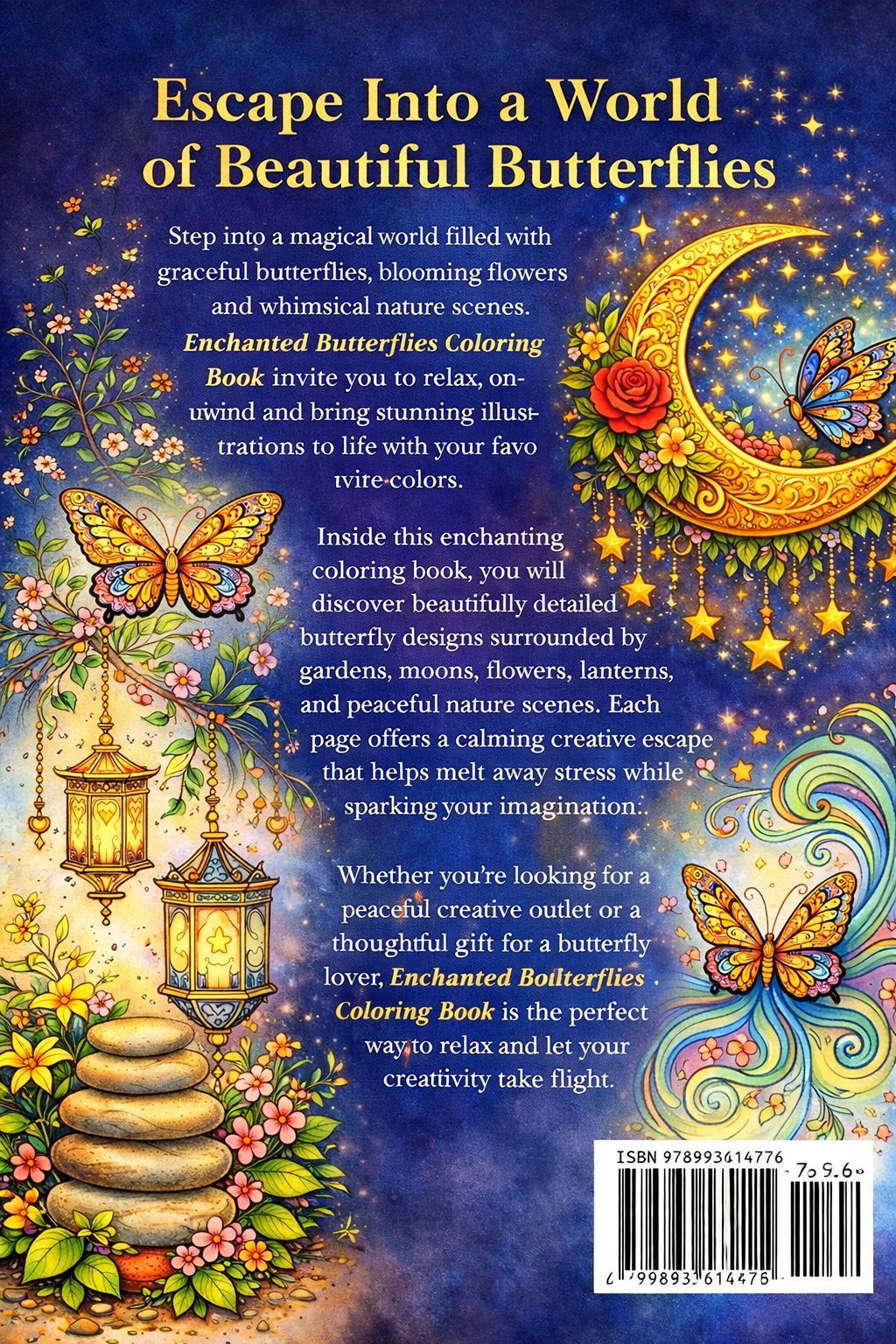 This digital coloring book features 30 unique butterfly coloring pages filled with enchanting designs including moonlit butterflies, floral gardens, peaceful nature scenes, lanterns, and whimsical decorative patterns. Each page is designed to provide a calming creative escape while helping you reduce stress and spark your imagination.